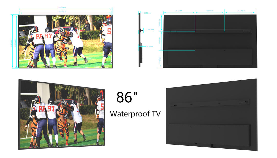 86 polegadas 2000nits 4K grande IP55 impermeável TV exterior Monut de parede